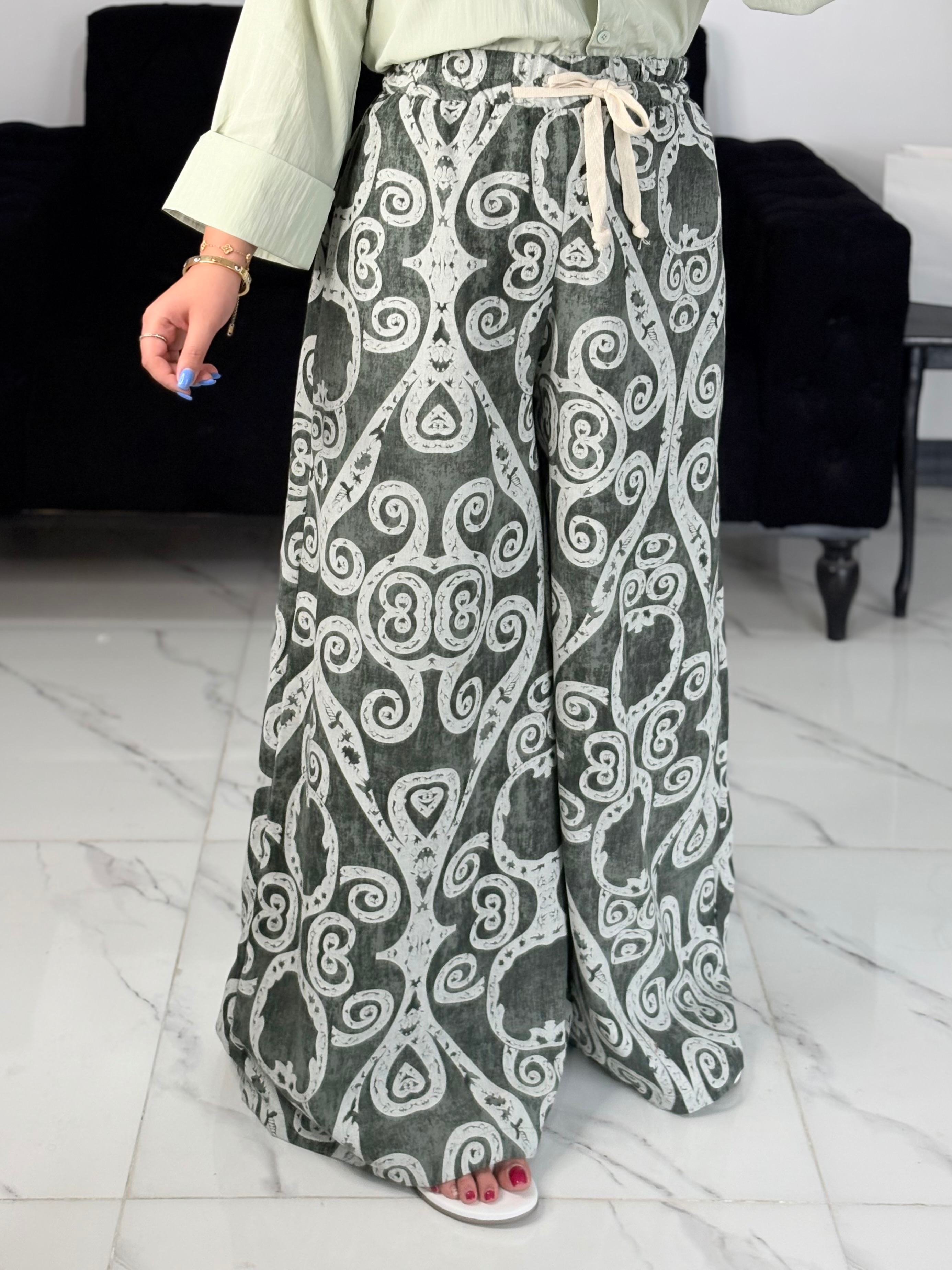 شلوار دامنی پارچه لینن ابرفت ندارد. قد شلوار حدودا 110 فری سایز تا 46 قابل سفارش به صورت ست با شومیز(شومیز simple) اماده ارسال فوری📦